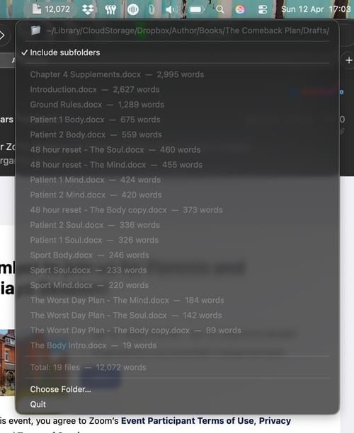 $5.00WordWatch is a lightweight Mac menu bar app that keeps a live running word count of your Microsoft Word documents — including files tucked away in subfolders. Instead of opening documents one by one, hunting through folders, or trying to keep track of multiple drafts in your head, WordWatch does the counting for you in the background and shows the total instantly from your menu bar.